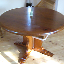 夫と二人であちこち探し歩き、ようやく見つけたのが、このテーブル。町外れのリサイクルショップで荷物置き場になっていた、相当な年代物です。傷だらけのところにヤスリをかけ、オイルをたっぷり含ませて磨いたら見違えるように綺麗になって、もう5年、我が家の中心にあります。
