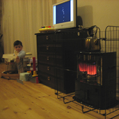 おばあちゃんの家にある、なんていう子もいるくらい。我が家でも、もともとは災害用に買ったのですが、とても便利で、いつの間にか冬の常備品になってしまいました。ストーブはゆっくりさん、エアコンはかけあしさんと、息子が言います。朝、一気に部屋中を温めるときは、エアコンを使い、昼間、娘と二人でひなたぼっこをしながら遊んでいるときは、エアコンとストーブを使います。ストーブにかけたやかんから、シュッシュッと出る湯気の音を聞いていると、なんともいえない幸せな気持ちになります。いつのまにか、娘のおかゆもいいぐあいにできあがっています。はいはいを始めた娘も気持ちよさそう。昔、私の実家では、アラジンの石油ストーブを使っていました。私には手入れができないので、今は四角いストーブですが、炎を見ていると、実家の六畳のお茶の間で、祖父や祖母もいた家族七人で賑やかに食事した、あの頃を思い出します。