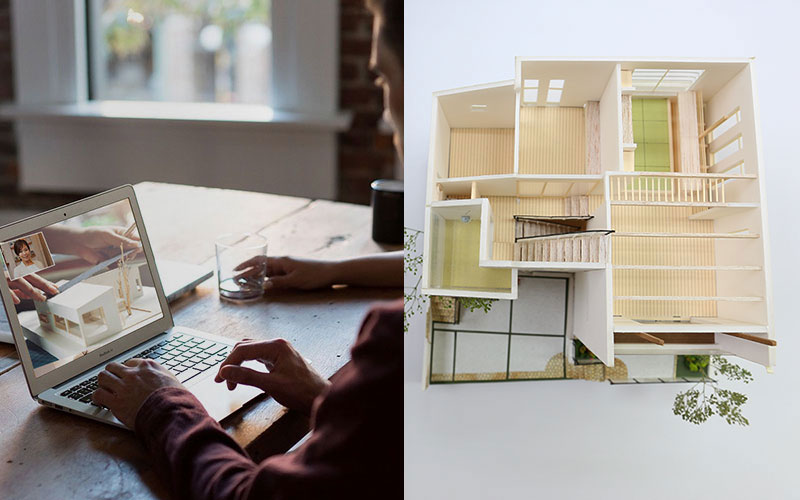 あなたの”理想の家”をヒアリングさせていただきます。夢に描いた理想の生活像をわたしたちに思うぞんぶんぶつけてください。そのヒアリングをもとに社内建築家がデザインをご提案させていただきます。また、離れた場所や来場されることが困難の方もスムーズに家づくりが進むようグループウェアによるリモートミーティングも行なっています。