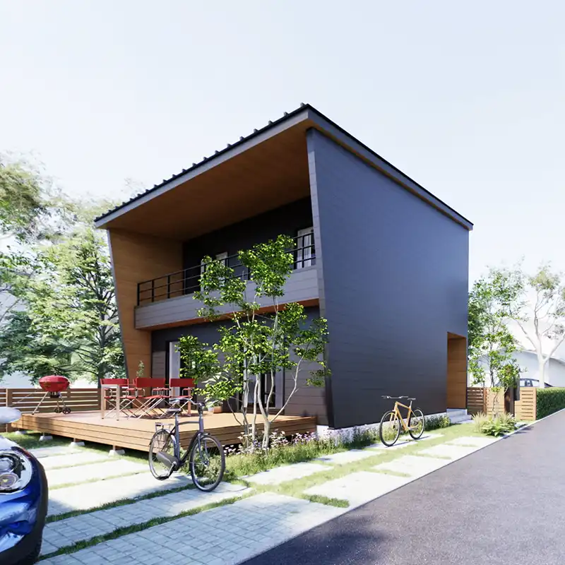 1階にテラスを設けることで、リビングから繋がる一体型の大空間を生み出すことができます。休日はご家族やご友人とBBQをしたり、お子様やペットの遊び場としたり、ハンモックでうたた寝なども実現可能です。ウッドデッキの素材はお好みに合わせ、本物の木の温もりを感じられる天然木や、木の風合いを残しながら耐久性にも優れた人工木などからお選びいただけます。