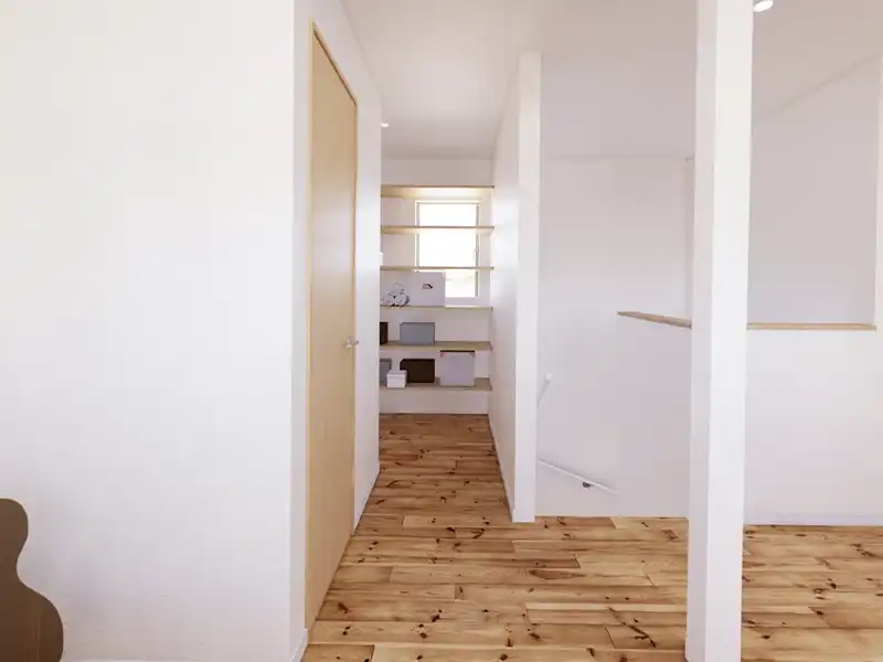 空間を綺麗なままで維持するためには収納がたくさんあることが必須です。無垢シンプルスタイルでは納戸を2部屋設け、家事や趣味の道具を収納できるためミニマルライフにおける強い味方となってくれます。