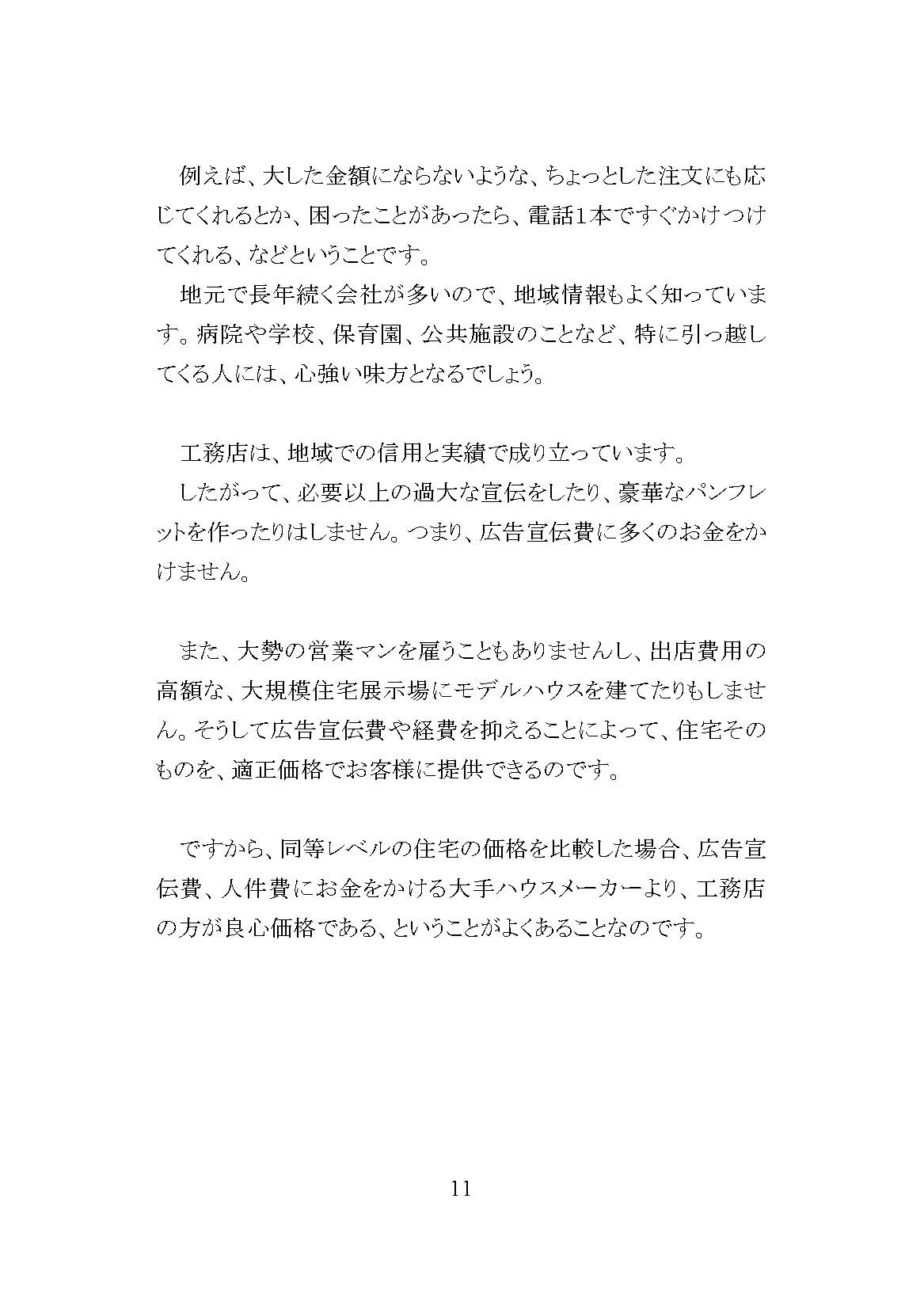 この本では主に、一般的な住宅を数多く手がける工務店と大手ハウスメーカーの違いを明らかにしながら、その特徴や問題点を取り上げています。