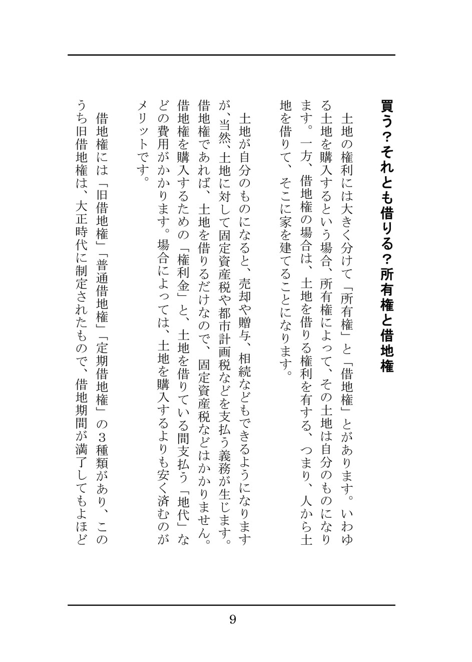 この本では、知っていれば得をする、知っていれば迷わない、そんな家づくりの豆知識や常識をいくつかピックアップしてご紹介しています。