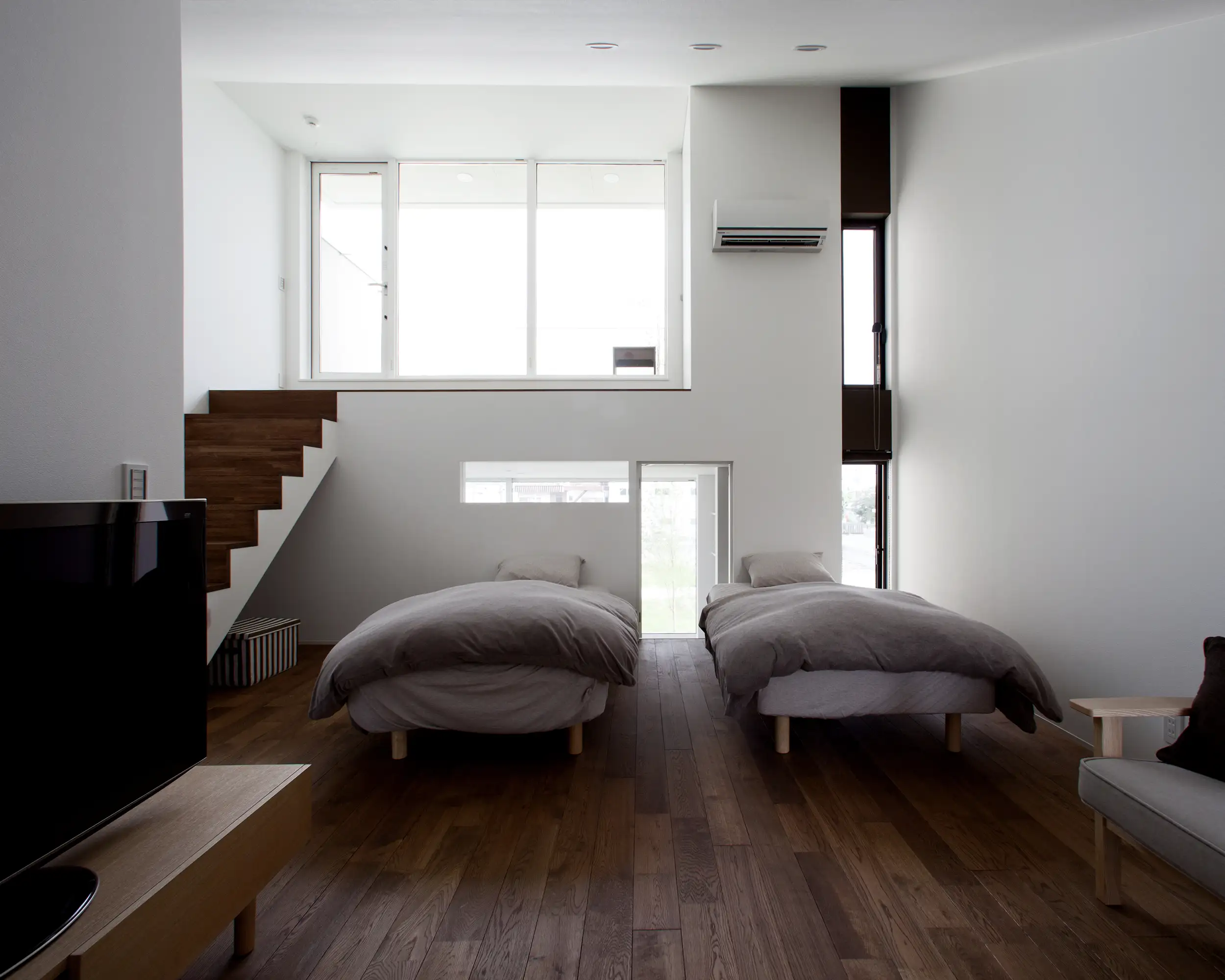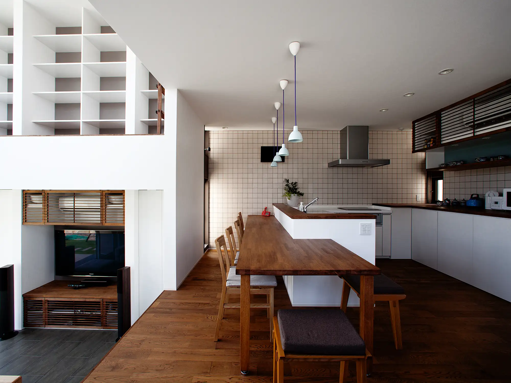 半階ずつずれながら空間がつながるスキップフロアは開放感を生みますが、在来工法では耐震性確保のため壁が増えがちです。SE構法なら構造計算により弱点を補い、安全で開放的なスキップフロアを実現できます。